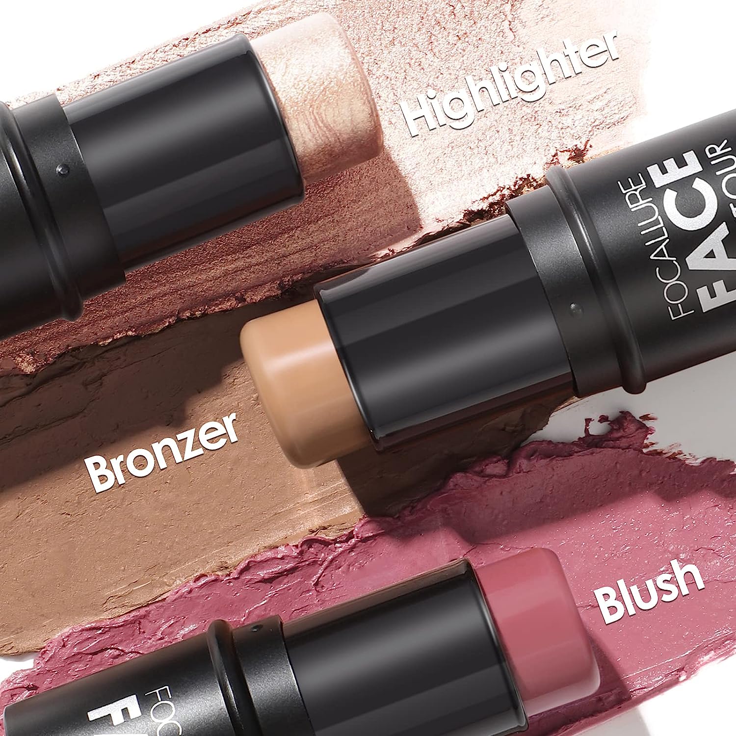 FOCALLURE 3 Pcs Cream Contour Sticks,Shades with Highlighter & Bronzer & Blush