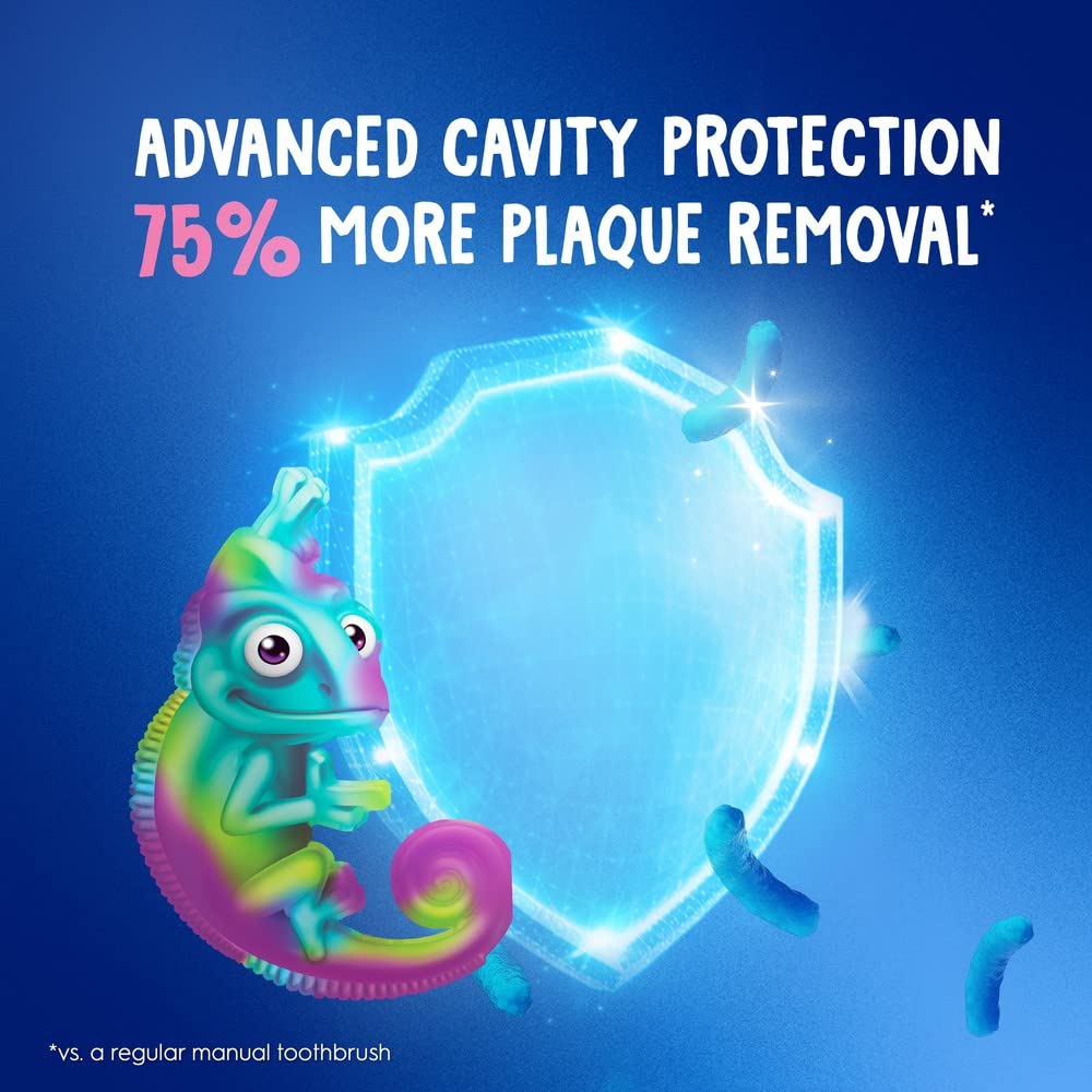 - Helps fight cavities by removing 75% more plaque than a manual toothbrush
